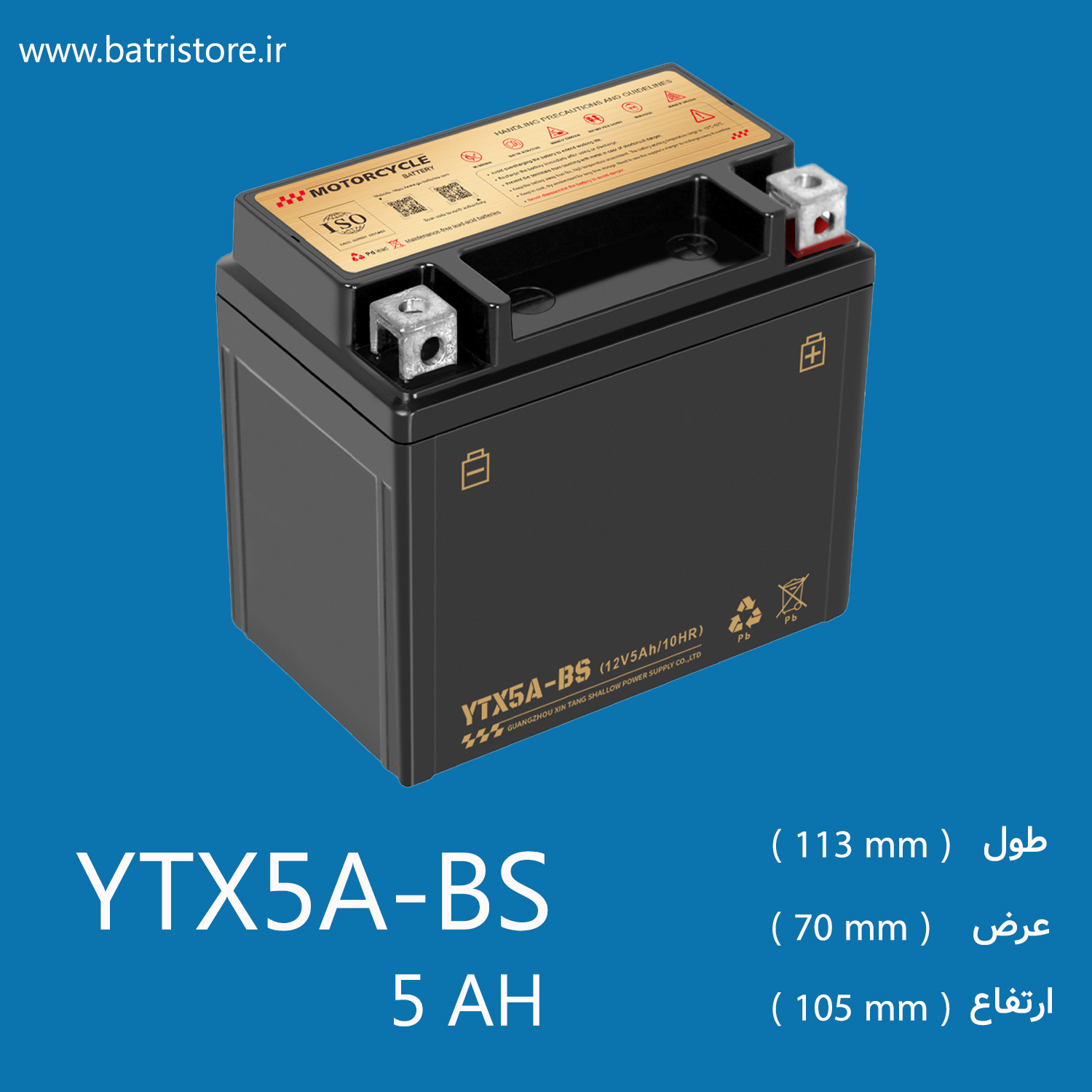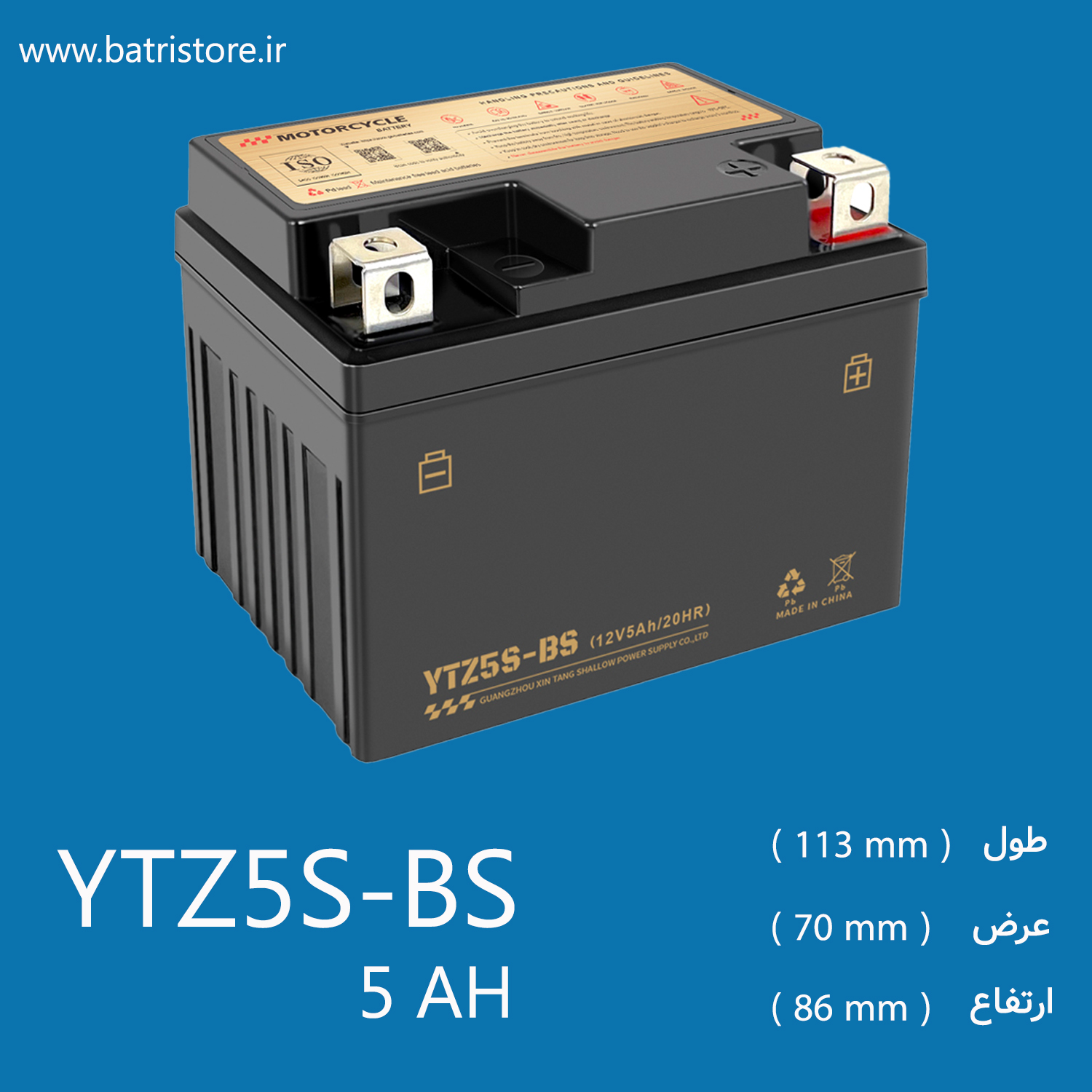 باتری ۵ آمپر متوسط که معمولاً با کد فنی YTX5L-BS (و گاهی YTX5A-BS در برخی برندهای چینی) شناخته میشود، از نظر ابعاد تفاوت مهمی با باتری ۵ آمپر کوتاه (YTZ5S) دارد. این باتری ارتفاع بیشتری دارد .