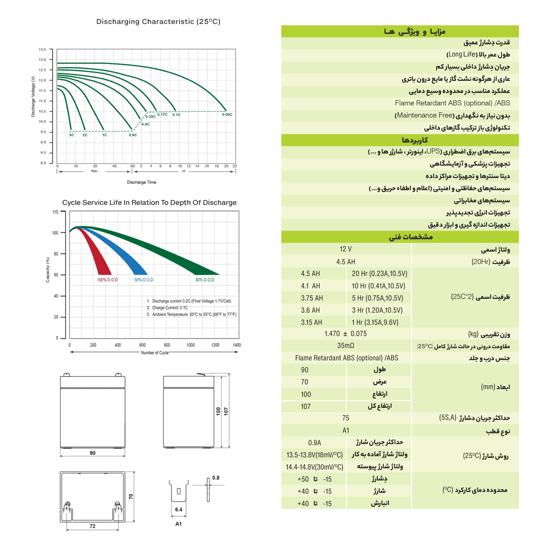 | ظرفیت نامی | 4.5 آمپرساعت (Ah) |