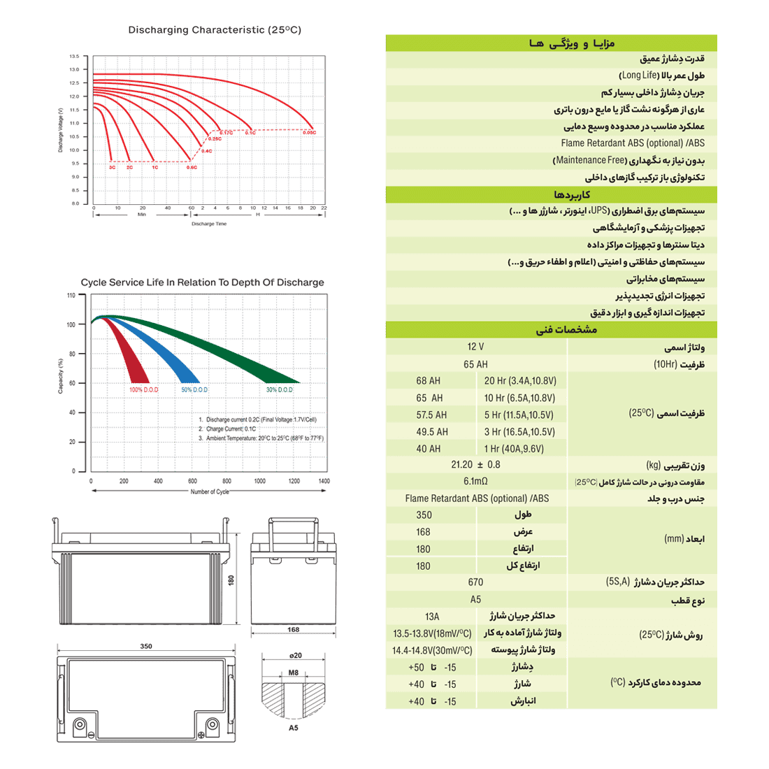- ✅ تکنولوژی AGM (Absorbent Glass Mat) برای جذب کامل الکترولیت