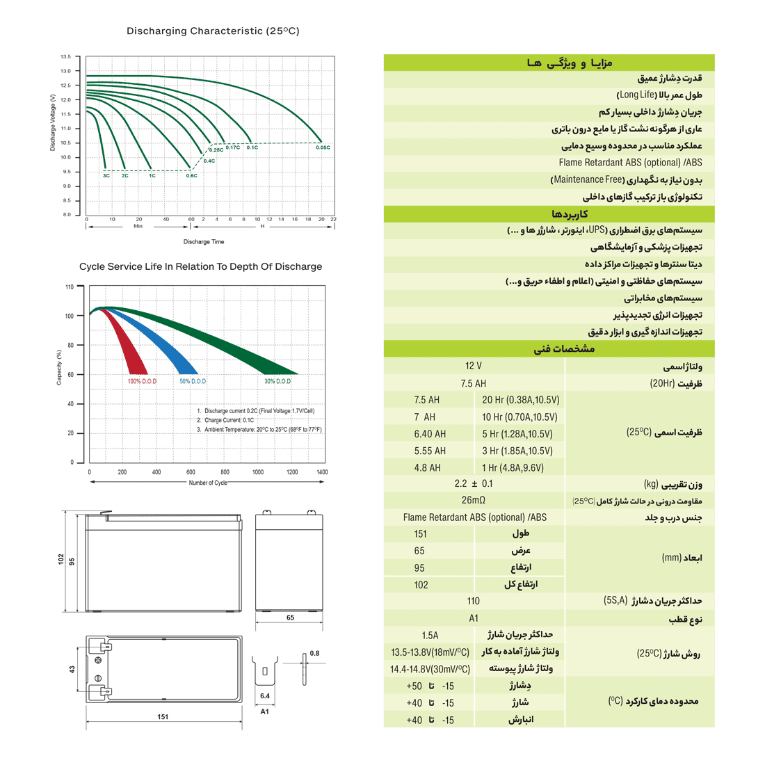 | ظرفیت نامی | 7.5 آمپرساعت (Ah) |