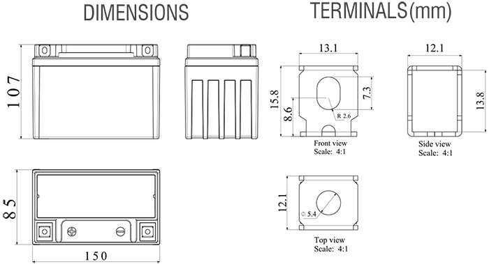 این باتری با ولتاژ شارژ 14.4V تا 14.8V سازگاری کامل دارد و حداکثر جریان شارژ آن 1.8 آمپر است. طراحی آن به گونهای است که با نوسانات ولتاژ شارژر موتور (تا 30mV/°C) به خوبی سازگار شده و از آسیب به صفحات داخلی جلوگیری میکند.